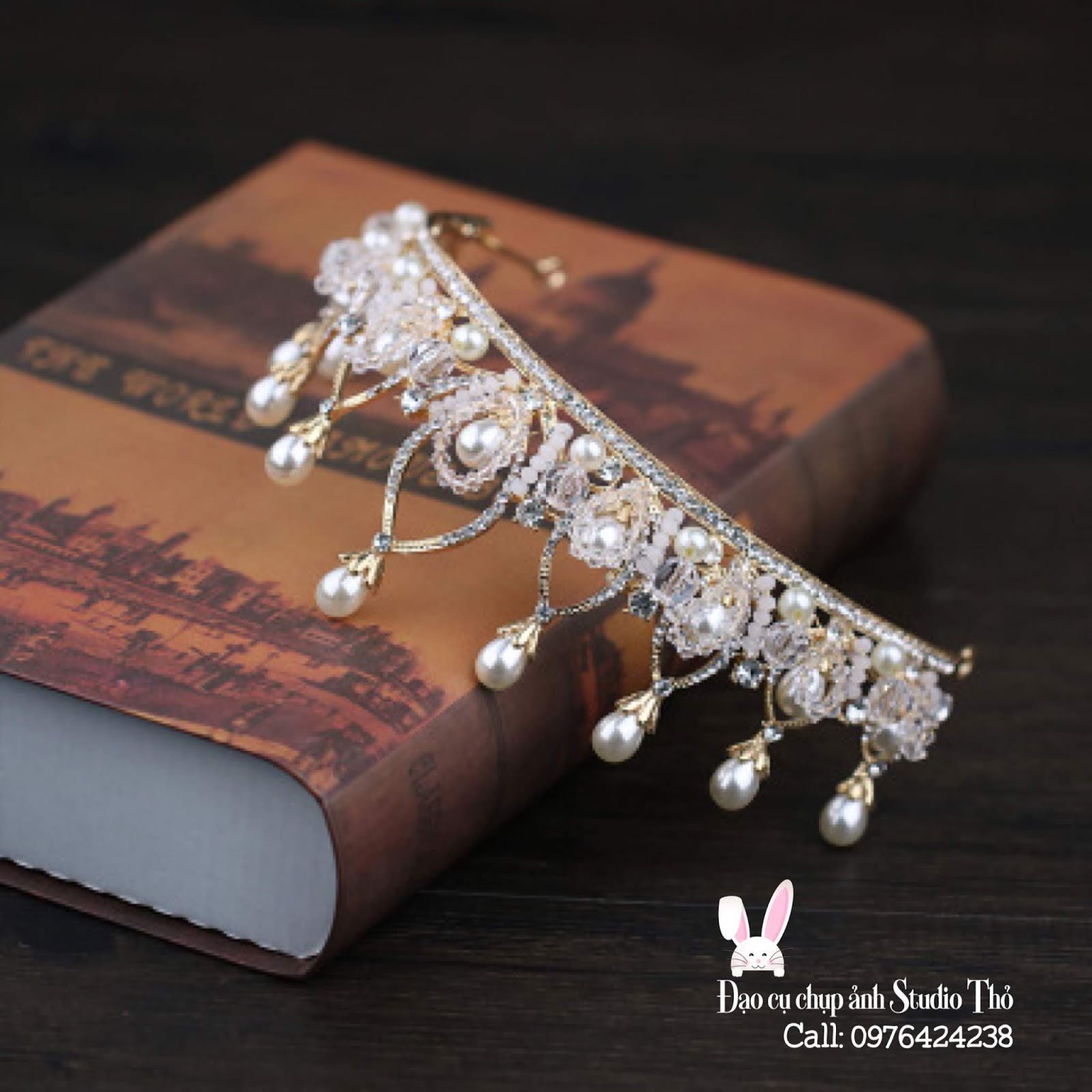 [chitiet]Kiểu tóc đẹp là yếu tố quan trọng tạo nên vẻ đẹp rạng rỡ cho nàng dâu vào ngày vu quy. Nhưng dù chọn kiểu uốn xoăn nhẹ đơn giản, búi rối phóng khoáng hay búi thấp kiêu sa, kiểu tóc của cô dâu sẽ không thể hoàn chỉnh nếu thiếu đi những phụ kiện tóc xinh xắn. Vậy Vương miện nửa đầu là một sự lựa chọn hoàn hảo cho bạn và đang được sử dụng rất phổ biến trong ngày cưới. Với phụ kiện này, bạn có thể tha hồ tạo những kiểu tóc linh hoạt để phù hợp với mình mà vẫn tạo một nét đẹp quyền lực cho cô dâu để mỗi cô dâu đều trở thành nàng công chúa đẹp nhất trong ngày cưới của mình. Vương miện nửa đầu được thiết kế với những mẫu mã đa dạng, đính đá, ngọc trai tinh sảo. Tại đây chúng tôi cho ra những phụ kiện hiện đại, mới nhất như: Vương miện nửa đầu, vương miện cả đầu, khăn chùm đầu cô dâu, hoa cài tóc cô dâu,... Đạo cụ chụp ảnh studio thỏ tự hào là địa điểm uy tín, với giá cả rẻ nhất trên thị trường. Đến với nơi đây bạn sẽ tìm được những mẫu mã Vương miện cô dâu đẹp và chất lương nhất. Vương miện nửa đầu cô dâu ở shop luôn mang đến cho bạn cảm giác hài lòng. Vui lòng xem thêm Tại Đây
